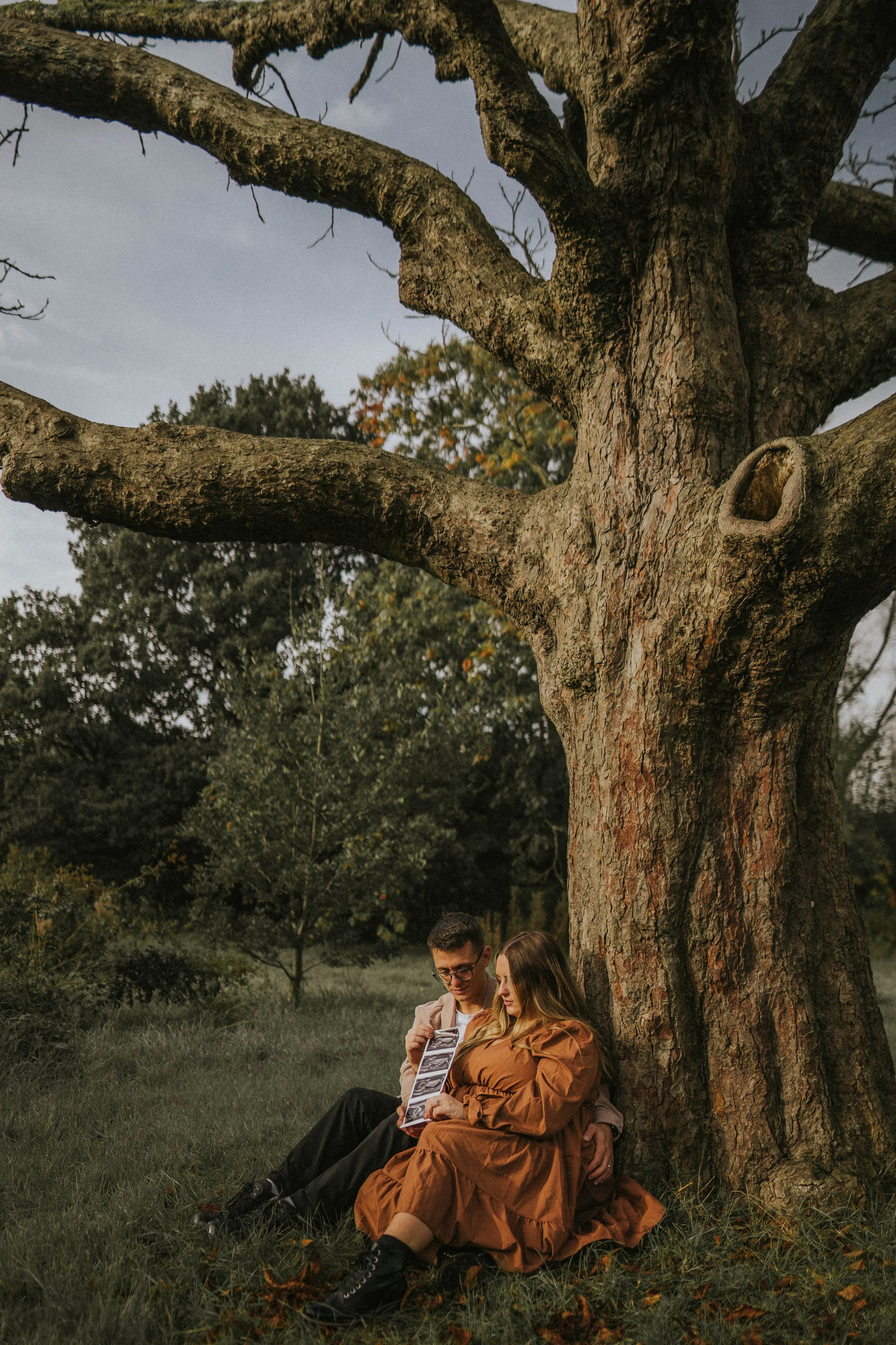 We spent the next hour moving around the spots I’d chosen for the shoot, capturing the love between the couple, and their love and excitement for the child they were expecting. It was beautiful from start to finish. We used the scan photos in most of the images, as well as a lovely, personalised wooden sign that Megan had made with her business, White Wolf Designs UK (@whitewolfdesignsuk). Megan had also made a personalised babygrow and we used pegs to hang it up for those beautiful, creative photos.